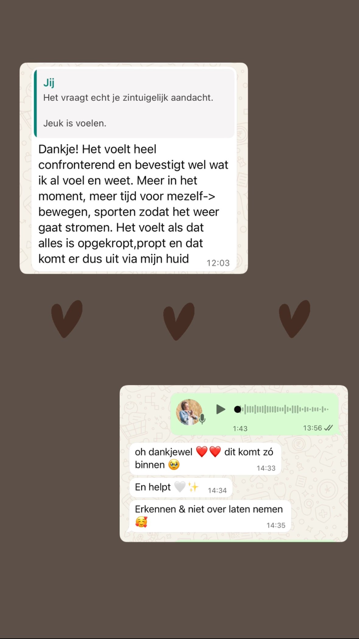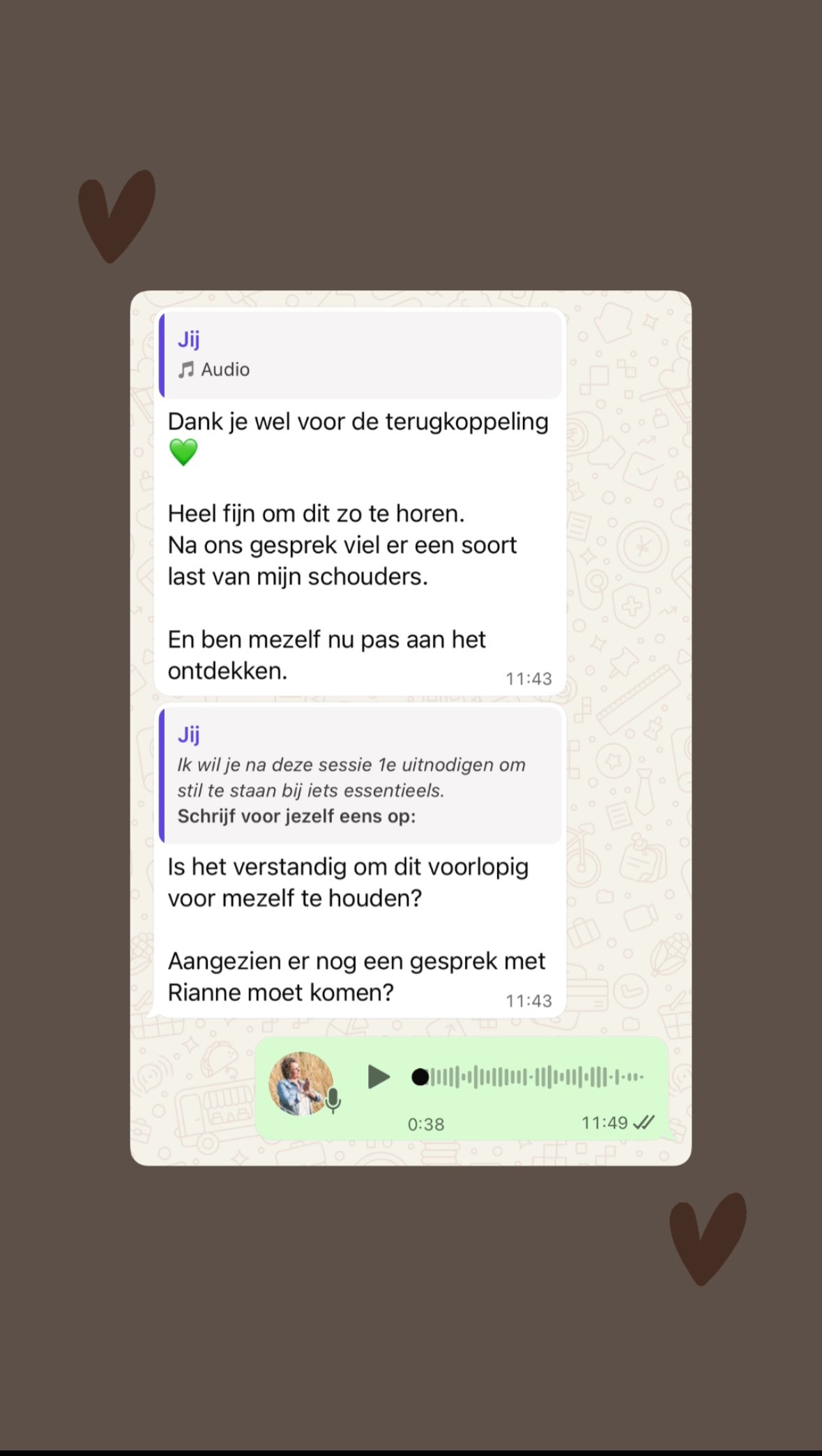 Haar begeleiding en ‘lief dagboek’-voice notes geven me helderheid precies